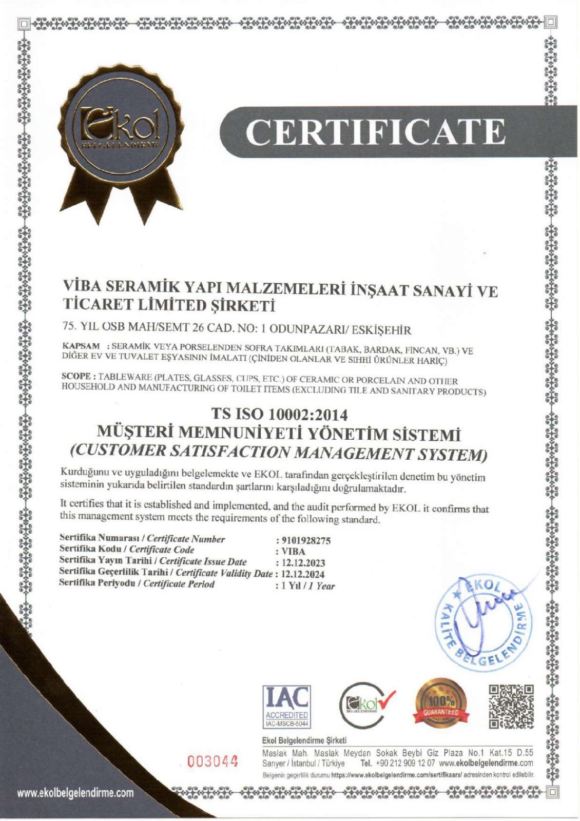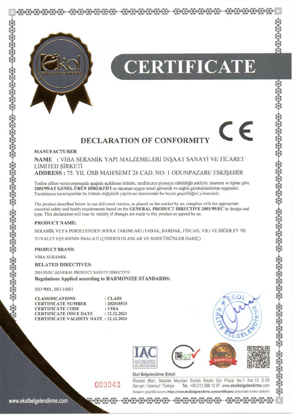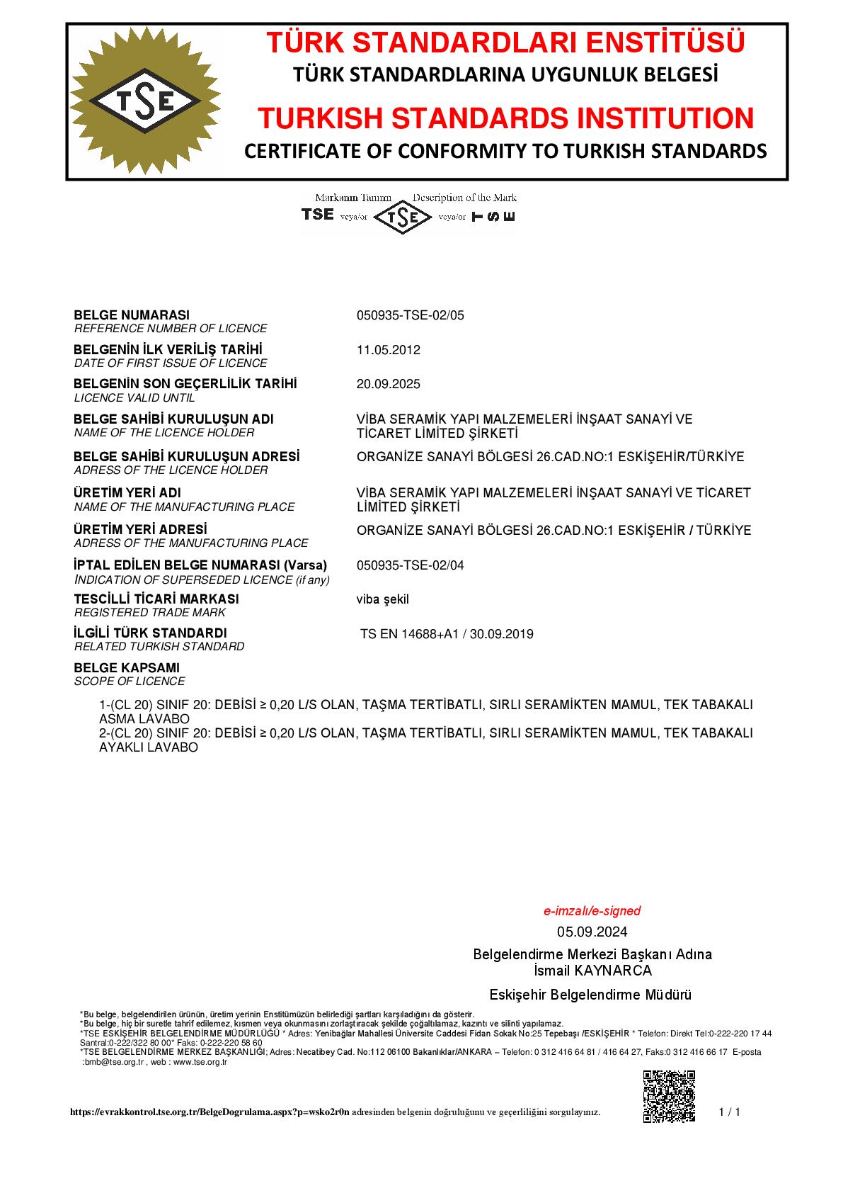 VIBA SERAMIK continues its activities in the ceramic sanitary ware sector with an annual production capacity of 500,000 pieces.